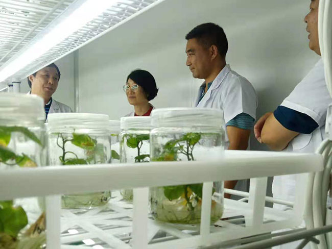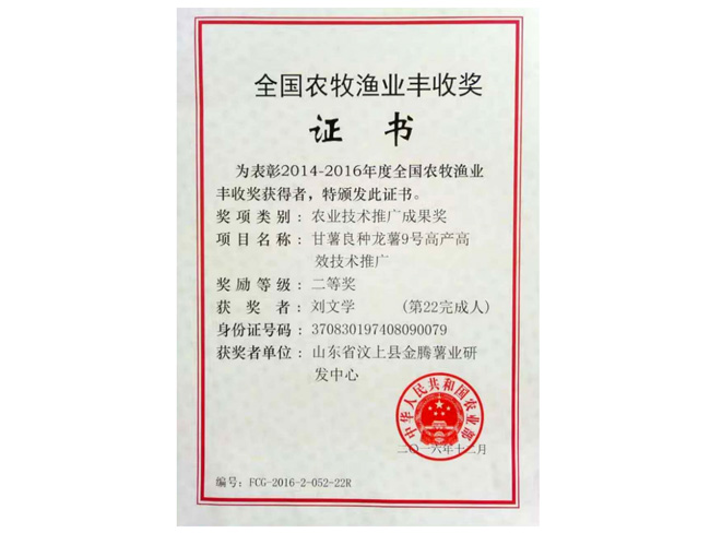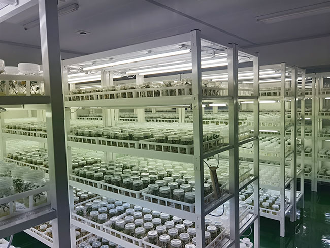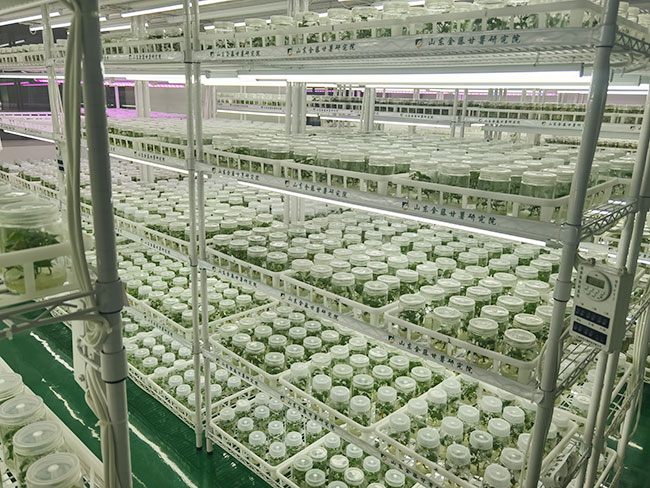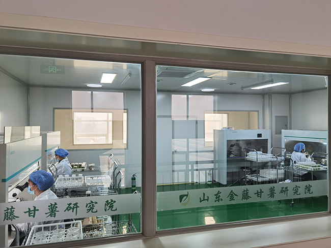 - 濟寧金藤薯業科技有限公司成立于2017年,聯合中國農業大學生物學院、山東省農科院、濟寧市農科院10位專家教授成立山東金藤甘薯研究院,秉持“科技強農、服務惠農”的思路,創新“院所+公司+合作社+農戶”模式,完善“科研、繁育、收儲、銷售”全鏈條服務。公司現有職工25人,經營土地面積1800余畝,擁有科研中心辦公樓2100㎡,脫毒組培實驗室1000㎡、冬暖式試管苗擴繁溫室30座、種苗擴繁網棚20000m2、拱棚面積400余畝、商品薯出口包裝車間2000㎡,種薯保鮮庫儲存能力1000萬斤。 每年繁育優質脫毒種苗2億多株,常年可提供優質脫毒試管苗、大田苗、高剪苗及各級別種薯、種苗。產品銷往全國各薯區。
